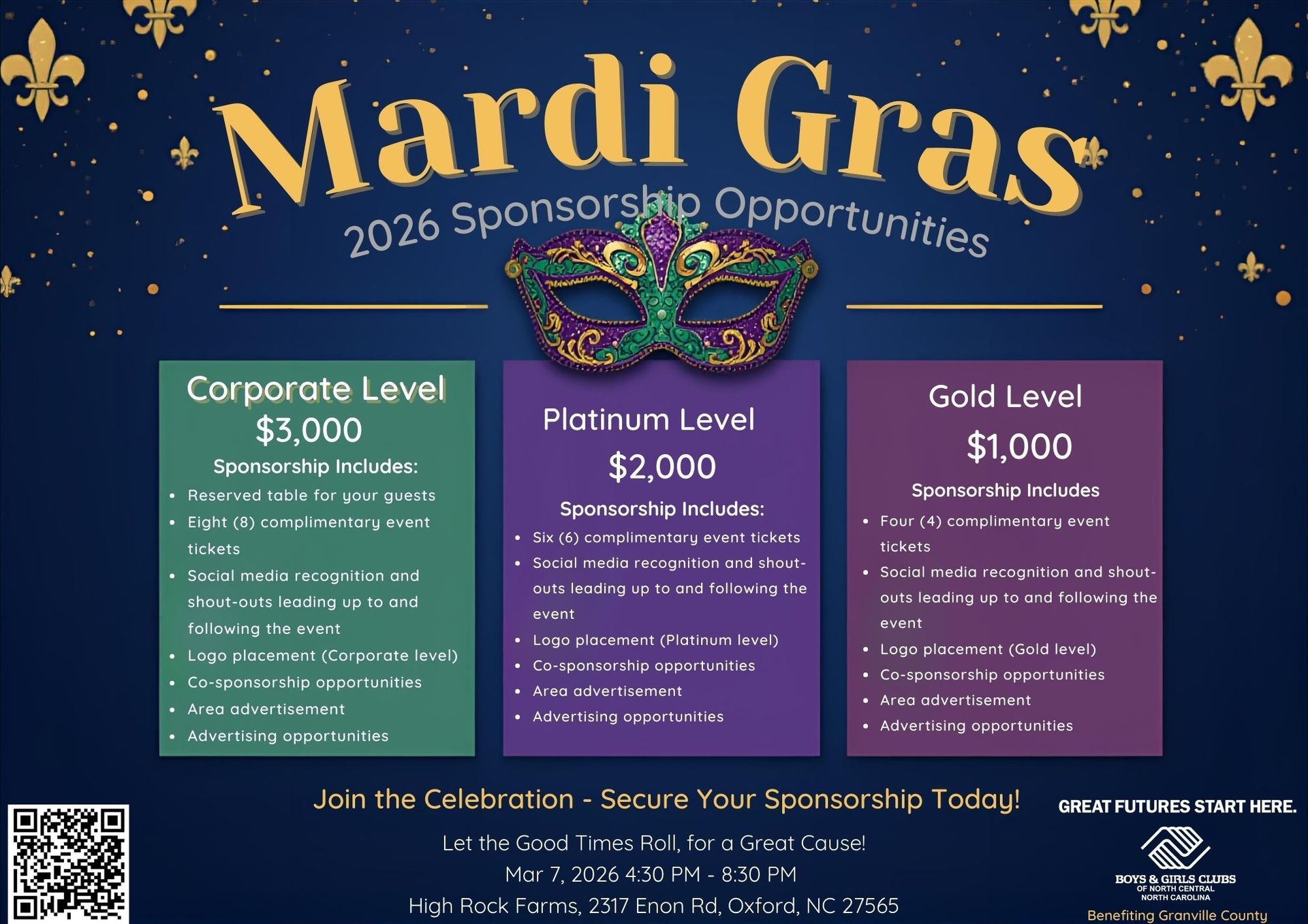 Your partnership helps provide safe spaces, mentorship, and great futures for youth across Granville County. Multiple levels available with premium event visibility and recognition.